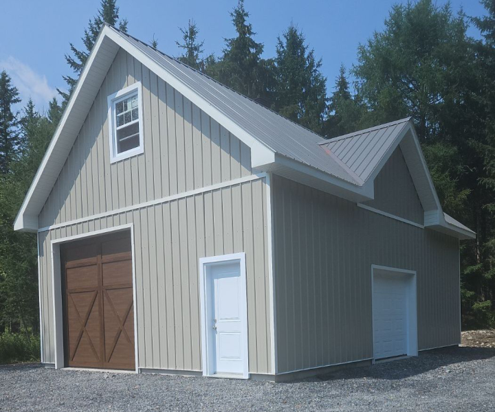 Cabanons Domtec fabrique des garages, des fermes de toit et des structures préfabriquées de haute qualité.